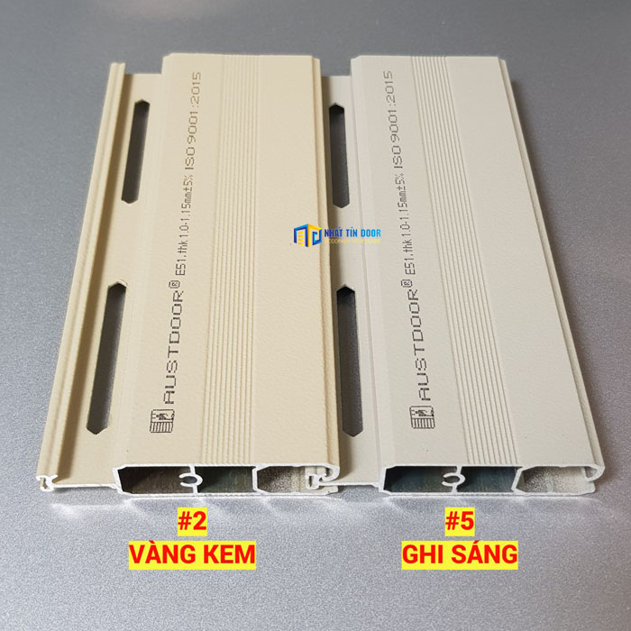 - Austdoor E51 còn sở hữu vẻ ngoài thẩm mỹ cao, màu sắc tươi sáng như ghi sáng, vàng kem sang trọng – rất phù hợp với xu hướng cửa cuốn hiện đại trong thiết kế nhà ở ngày nay.