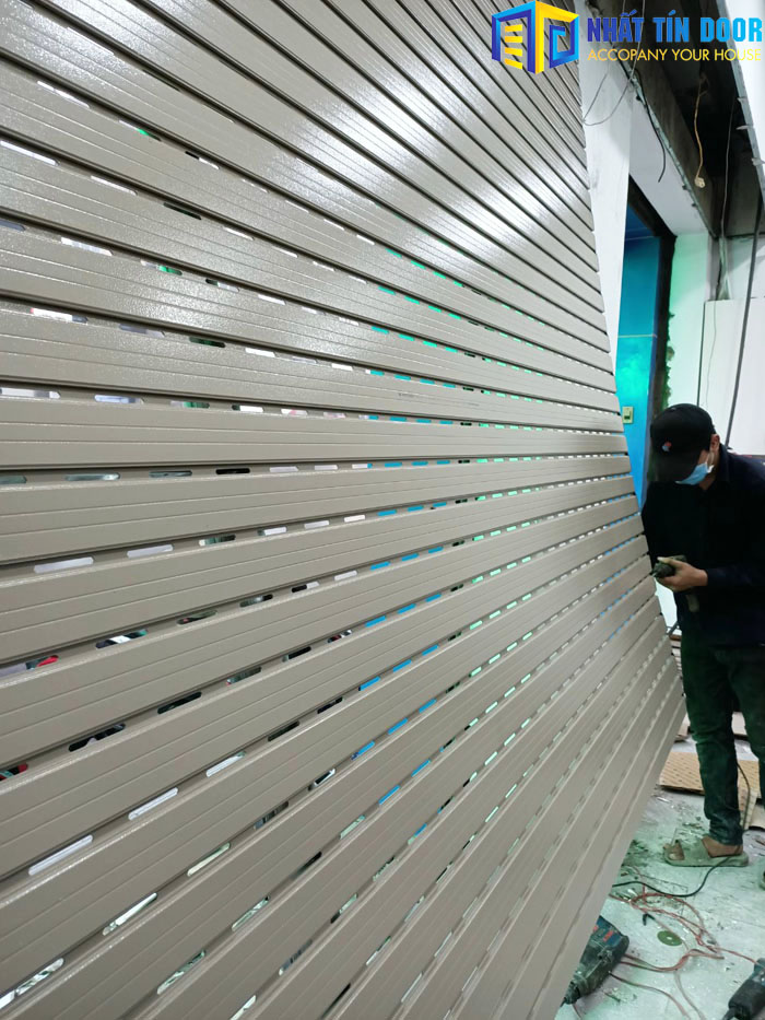 - Cửa cuốn nhôm cao cấp màu ghi tối có sẵn trong nhiều kiểu dáng khác nhau, từ loại nan kín chặt đến loại có khe thoáng giúp thông thoáng không gian và giữ cho ngôi nhà luôn thoáng đãng.